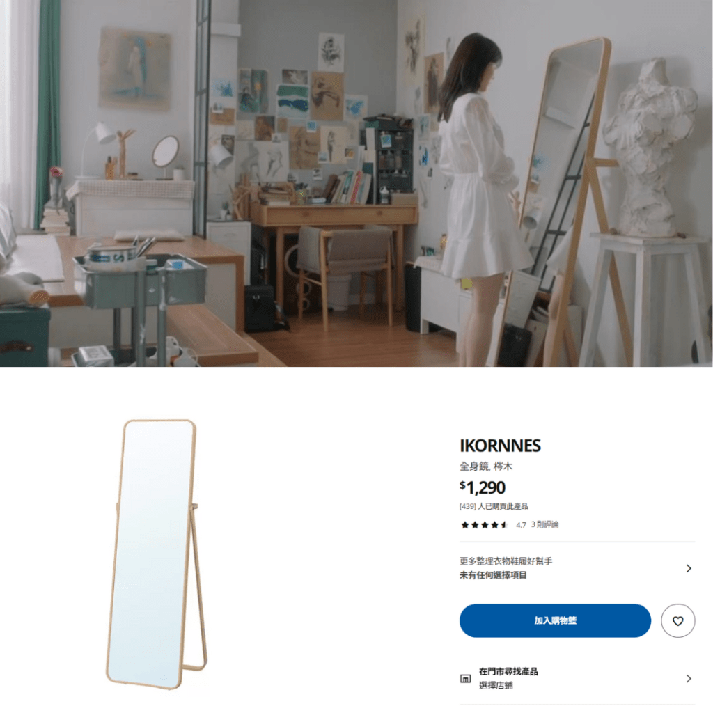 宜家家居IKORNNES 全身鏡, 梣木 $1,290 (按此購買)